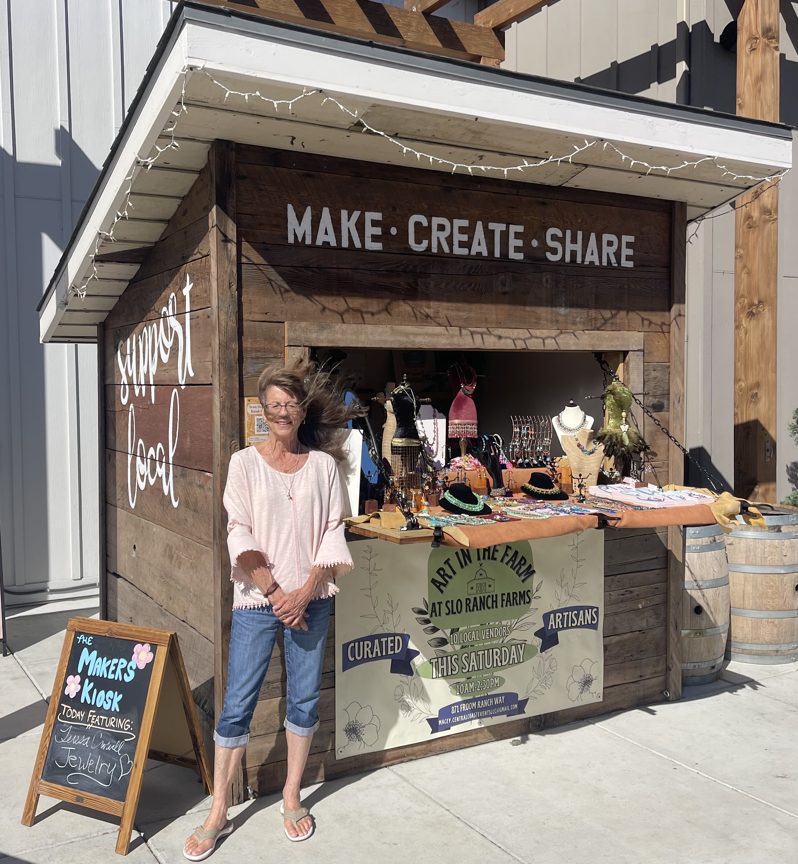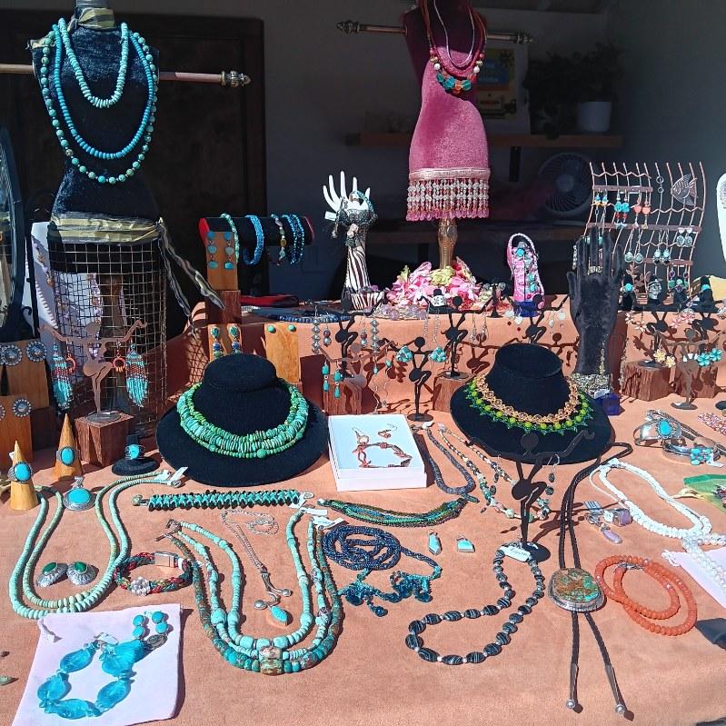 Recently, Teresa has returned to California and is selling in a kiosk at the SLO Ranch Farms, 871 Froom Ranch Way, San Luis Obispo, CA. Her pieces made over the past 18 years are simply lovely. They are made from the fine beaded jewelry supplies coming from the Tucson Gem & Mineral Shows in a variety of colors and semiprecious gemstones, turquoise, sterling silver. I especially like the turquoise. Bring your friends to a new shopping location. I plan to go again, so join me sometime soon.