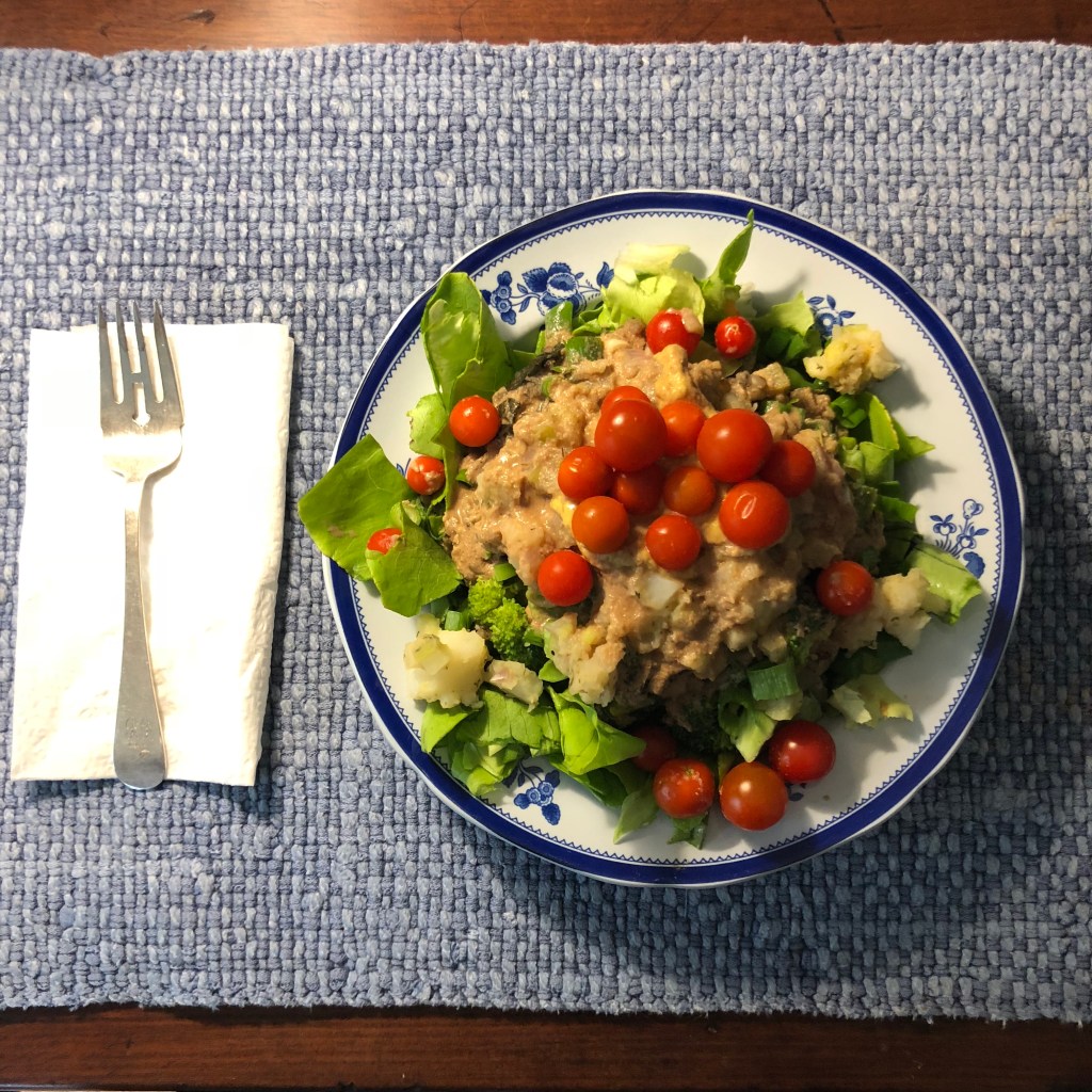 Looking up a kabocha squash directed me to a recipe which I adjusted to make totally plant-based, no oil, no meat or dairy. After hollowing out the squash, I roasted it for an hour until it easily stuck done. The day before I had made seasoned farro, celery, carrots and onions. My latest assembly of mushrooms included my new favorite long steamed Beech mushrooms along with the familiar white button mushrooms. All I had to do was to assemble and season my stuffing. Roasted carrots were cooked with the squash during the last 20 minutes and arranged with the squash and surrounded with young spinach leaves.