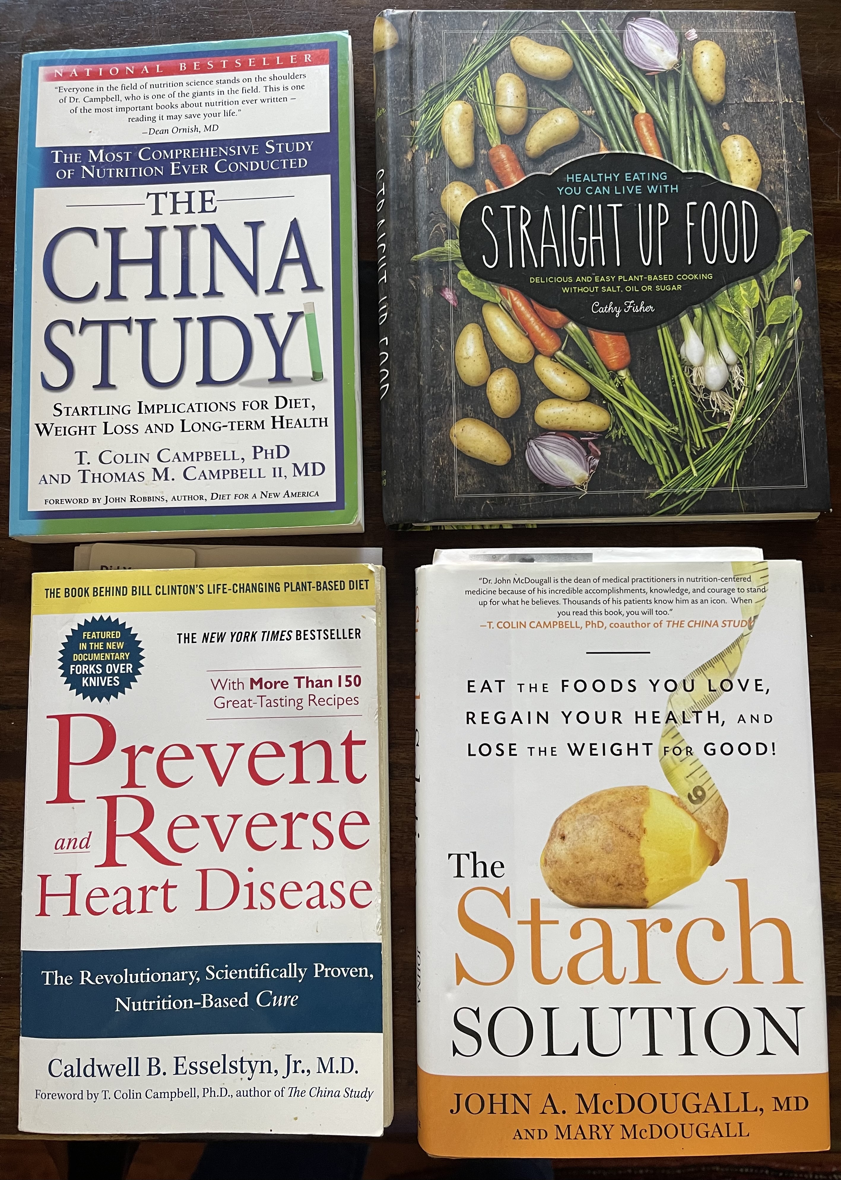 Lately, our choices of food have been gravitating towards more plants, especially unprocessed plants. We call it a whole foods plant-based diet. The first book I read about this way of eating was “The China Study” written by T. Colin Campbell, PhD and his son, Thomas M. Campbell ll, MD. Eating this way is done to lessen the chances of succumbing to the chronic diseases we might experience as we grow through our baby, teen, young adult, middle age, senior and oldest years.
